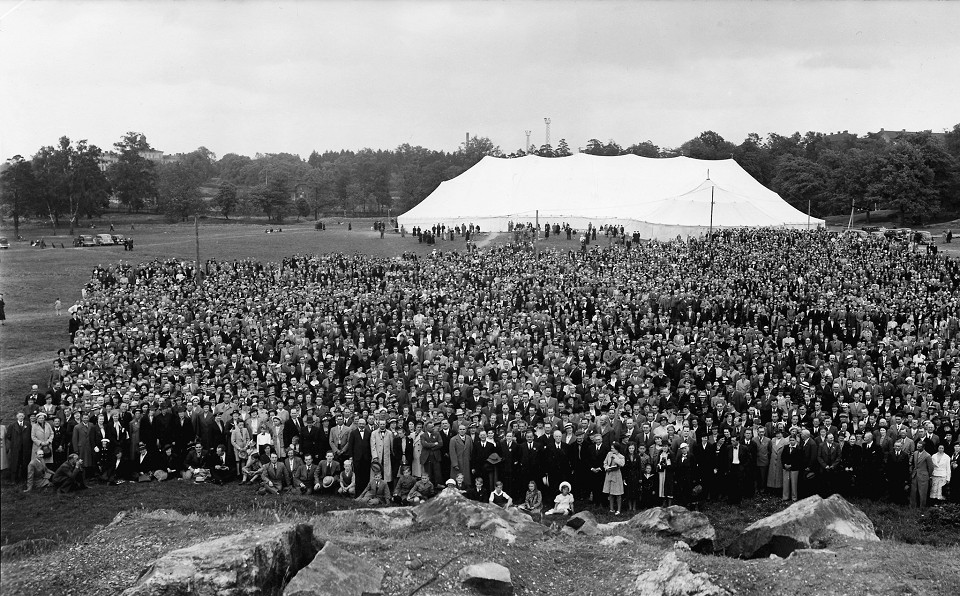 Europeiska pingstkonferensen Den europeiska pingstkonferensen i Stockholm 5-12 juni 1939, samlade pingstvänner till en konferens med 500 utländska deltagare där samtalen rörde för rörelsen centrala ämnen: dopet i den helige Ande och tungotalet som tecken på detta dop, organisations- och samfundsfrågan, idén om en gemensam trosbekännelse och enhetsfrågan. Stora offentliga möten hölls parallellt i Filadelfiakyrkan och ett 10 000-mannatält i Karlbergsparken. Förlaget Filadelfia samlade efteråt predikningar, tal och samtal från konferenser i en skrift.