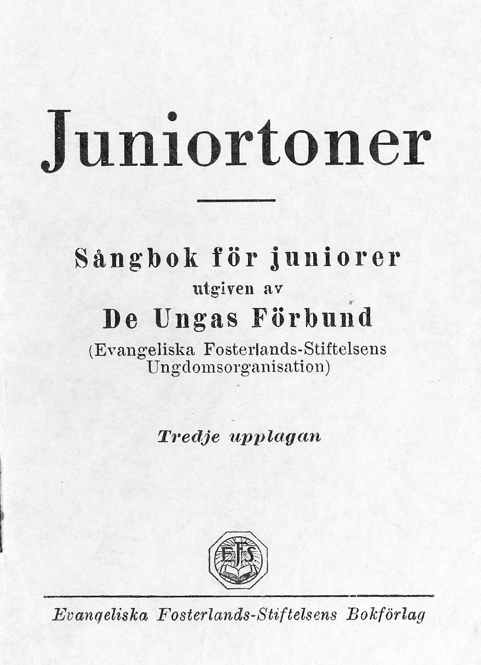 Juniortoner. Juniortoner Juniortoner, sångbok för yngre ungdomar (juniorer), utgiven första gången 1943 av De Ungas Förbund inom EFS. LOE